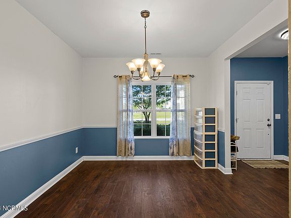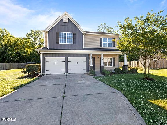 Welcome to Moss Creek! This 4 bedroom house with a bonus is ready for new owners. The covered front porch greets you as you open the front door. Walk into the entryway and the formal dining room greets you. Down the hall the living space opens up to the large living room, breakfast room and very lguest bathroom. 3 guest bedrooms with large closets. The primary bedroom is also upstairs with 2 large walk in closets and a bath suite. There are double vanities, private water closet, soaking tub and shower. Outside you will enjoy the scenery of the tree lined backyard from your deck. The oversized yard is perfect for cookouts or family gatherings.