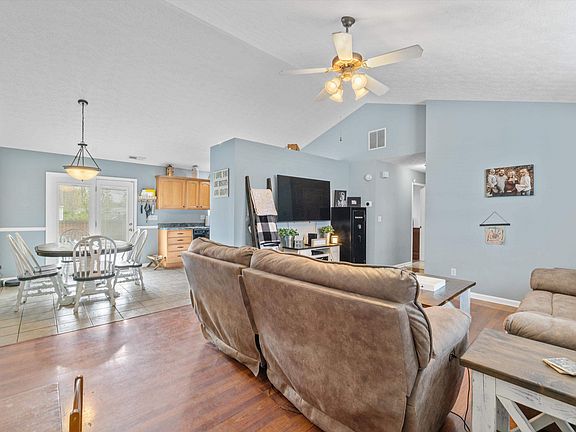 Welcome home! This 3 bedroom, 2 bath home is all one level is very easy to maintain. You’re immediately greeted with updated laminate flooring and a vaulted ceiling that enhances the common living area. The kitchen features an abundance of cabinet and countertop space, with a separate pantry. The dishwasher was recently replaced. This home features a split floor plan, for convenience and privacy for the primary suite. The primary suite features two closets for better organization. The two guest bedrooms feature new carpet in both. The vinyl exterior was recently pressure washed, the front exterior was professionally landscaped, and this home features a wooden privacy fence to make the perfect backyard oasis. The storage shed is included. The property extends further than the fenced area on one side and includes an extra parking pad.