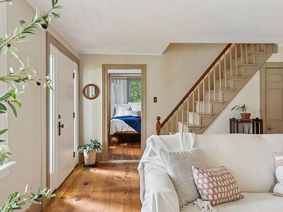 Experience tranquil riverfront living at its finest on this impeccably maintained property. Pride of ownership is evident throughout the charming house and grounds. Boasting 3 bedrooms and 2 bathrooms, the home seamlessly blends historic charm with modern updates focused on energy efficiency, including solar panels, and added insulation. The original home was built 1838 with an addition added in 2000. Adding to its allure, a detached garage, built in 1999, with a 1 bedroom, 1 bathroom apartment offers ideal accommodations for guests, family members, or potential rental income. A picturesque post and beam barn provides ample space for hobbies or storage, complementing the serene surroundings of lush gardens, apple trees, blueberry bushes, and wooded trails leading to the riverfront. Whether you're drawn to the tranquility of waterside living or the versatility of this meticulous property, every aspect invites you to fall in love with a lifestyle that combines nature and contemporary comfort.