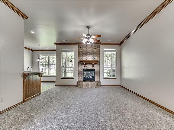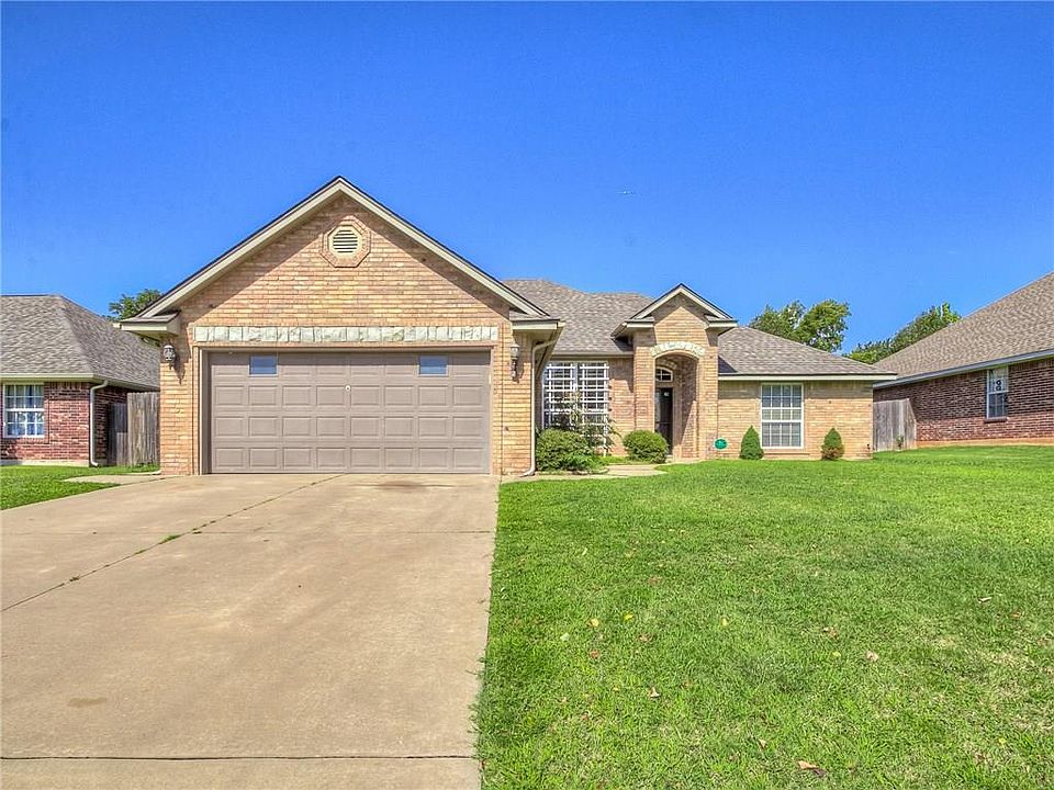 Immaculately maintained & ready for you to make it your own! With a lush green lawn & charming brick exterior, this stunning, freshly painted home packs plenty of curb appeal. A welcoming entry greets your guests & opens to the beautiful living room with new carpet and a brick fireplace centerpiece & open views of the kitchen & eat-in dining space & picturesque window views of the secluded backyard oasis. The entertainer's kitchen boasts stainless appliances, a breakfast bar & eat-in dining space. New carpet in the office and a brand new Nest thermostat too. The cherry on top is the spacious backyard (property line goes 6" beyond fence) secluded by privacy fencing & providing plenty of peace & quiet.New roof July 2020. All this PLUS the wonderful amenities that Windmill Farms has to offer including a neighborhood park, pond & basketball court & convenient access to shopping, Tinker Air Force Base, Boeing & Choctaw/Nicoma Park Schools. Come see it today!