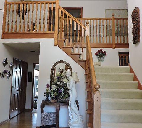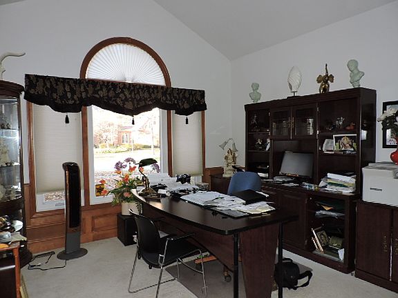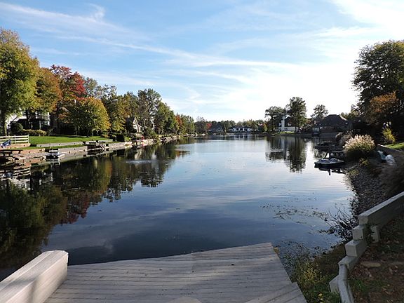 Spectacular lake home w/incredible views from the Family Rm, Sun Rm & Kitchen & from the huge Master Suite. Approx 3400 sqft. has 4 poss 5 bedrms & 5 full baths, 2 story foyer w/wood flrs. Den w/cathedral ceiling. Family rm lined w/large windows for great views w/firepl. Huge kit w/firepl, granite ct tps,granite tile flr. fin basement & separate golf cart garage. Newer Roof,windows & gutter guard. Taxes do not reflect.