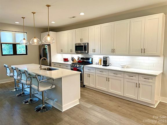 Absolutely sensational duet style townhome nestled in historic Seversville! This modern end unit townhome (built in 2019) boasts all the luxury & convenience of uptown w./ a nice quiet surrounding. This clean, open & light-filled space boasts an entertainer’s dream: main level is a nice open concept bright floor plan. LR, DR & kitchen feature modern finishes, floating stairs, quartz counters, stainless steel appliances (fridge, washer & dryer included) & much more! Enjoy wooded serenity on your large back patio in your fenced-in yard. Krono Swiss flooring in main living areas & all BR’s. Large primary suite up w./ walk-in closet & bath w./ oversized shower & dual vanity. Walkable to the Greenway, Blue Blaze Brewery, Five Points Plaza, Gold Line, upcoming Sedona Mill & more. There is no HOA! This is Modern Living at its Best!