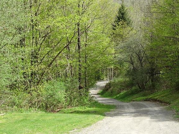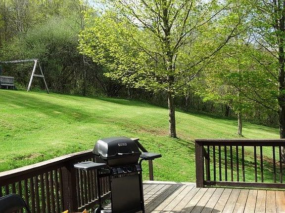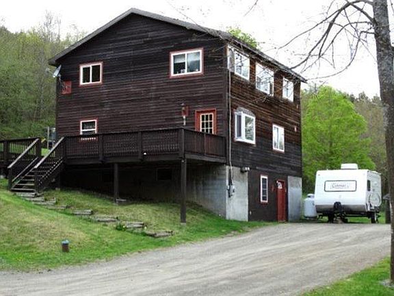 PERFECTLY PRIVATE on 5 ACRES! Borders Bucks Brook STATE LAND for excellent HUNTING. Great home built in 1998 and designed with RUSTIC CHARM! Adirondack style tongue and groove pine and OPEN BEAM VAULTED CEILINGS accentuate the living & family rooms. Pretty Country Kitchen has tons of cabinets and counter space and awesome WALK-IN PANTRY. Downstairs bedroom is close to full bath. Two bedrooms and full bath (jetted tub) upstairs. Full walk-out basement is partially finished and has a large coal stove to to beat high energy costs! TRUE COUNTRY and NO NEIGHBORS!