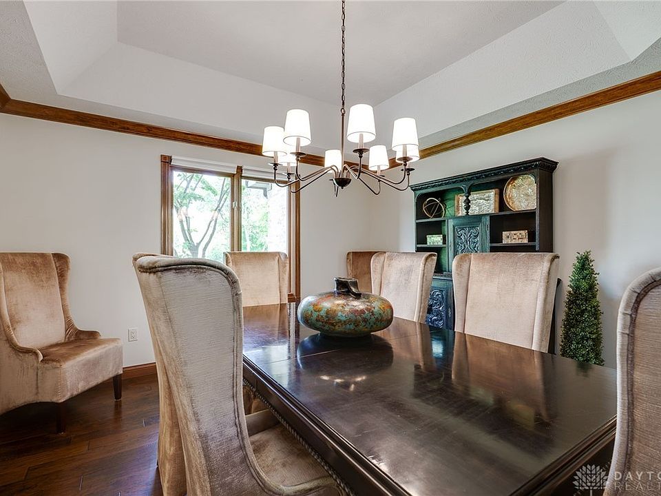 Beautiful custom home built for comfort and plenty of room for entertaining. This well constructed home has accessibility features with a first floor primary and ensuite featuring a walk in shower and elevator lift from the two car garage to main floor as well as to the walk out lower level. Living room has vaulted ceilings and a gas fireplace and wet bar. Office with French doors as well as formal dining room to finish out the main floor. Second floor has three generous sized bedrooms with a full bathroom. A secondary living area in the lower level features, large bedroom, game room and full bath, and calming rock waterfall. Large deck at the rear of the home can be accessed from the kitchen or primary bedroom that overlooks the serene backyard. Spacious eat in kitchen has a double pantry, granite counter tops, with solid wood cabinetry. Living room features a gas fireplace and wet bar. Easy access to Wright Patt AFB, Downtown, 35 and in Beavercreek School system, just stop, you found it. This well constructed home is waiting for you. Total SQ ft of home is 5076 per independent appraiser. New Roof July 2025, two new HVAC condensers 2024, and Hot water tank 2019. New refrigerator & microwave 2025.