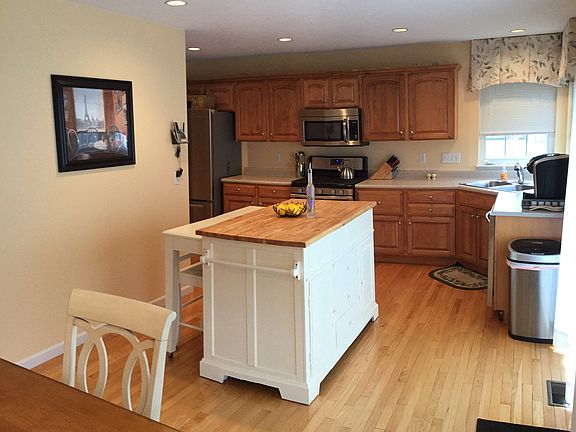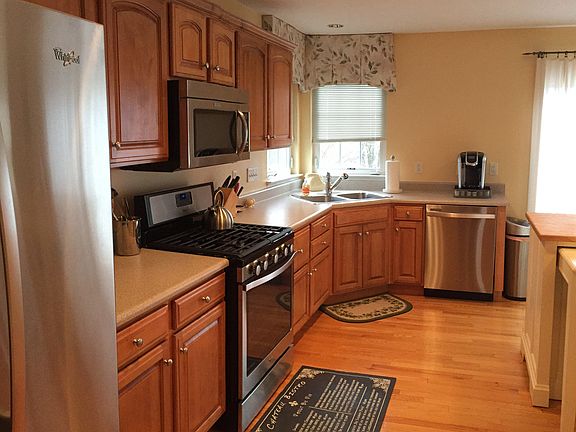 Beautiful end unit in highly sought after Adams Ridge neighborhood. Refreshing finishes, décor, and style make this townhouse move in ready! New Roof 2019. Large family room with bump out, light and bright kitchen with hardwood flooring, designated dining room, island, and pantry. Sports fanatic's dreams come true in the finished lower level off of the garage, WOW! 3 bedrooms with beautiful paint colors makes it so easy to call this space home. Upstairs Laundry room, private deck overlooking green space, and quiet cul-de-sac location. Adams Ridge siedwalk community offers community pool and clubhouse, basketball and tennis courts, large playground, with walking distance to shops and restaurants.