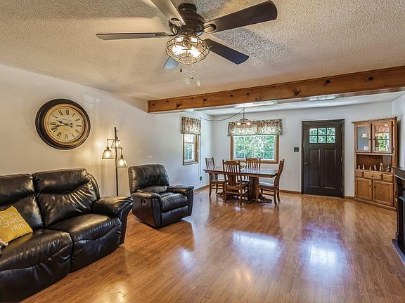 If you have been dreaming about having your own hobby farm without having to drive miles on a gravel road then this in town acreage is for you! With over 4 fenced in acres you'll see a newer 30 X 50 building next to a pond along with barns perfect for horses, goats and other animals. With plenty of room for parking there is a 2+ attached garage and a 1 car detached garage with an extra storage shed. Inside the beautiful 4 bedroom 2 bathroom home you'll be greeted by an open floor plan with a gas fireplace perfect for those chilly nights. Also on the main level will be your laundry room with lots of possibilities. From the kitchen you'll see your large walk out patio that leads to a new cedar deck with a heated partial underground 18 x 33 pool and gazebo perfect for entertaining.