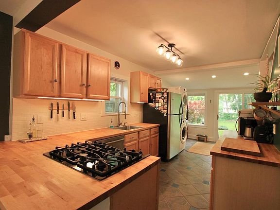 This 1930 Cape Cod has been transformed into a true Pride of the Neighborhood pick. From the welcoming entry, step in and you'll find everything in its place. A cozy living room with afternoon sun, & gas fireplace with ceramic tile surround. Two bedrooms at the back of the house face a most gracious backyard with handsome stone patios. It's a perfect gathering spot for games, barbecues, or a quiet moment of meditation. The bath has new flooring, paint, and toilet. The kitchen has beautiful new butcher block countertops, lighting, and tile backsplash, along with a new dishwasher and washer/dryer. A sunroom at the south end of the kitchen provides a pleasant reading nook and a pretty view of the private backyard. A finished attic space of 420 SF is in addition to the 1055 SF on the main level. Fresh paint inside, central AC, new top-down window treatments and driveway. Upscale cedar fencing by Whitmore for privacy and for the dog! Walk to Wegmans. Major bus stops within 1/2 mile.