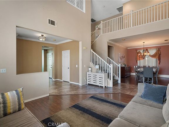 Welcome to this immaculate model home nestled in the prestigious gated community of Elm Park in North Rialto. This residence offers 4 spacious bedrooms and 2.5 well-appointed bathrooms, including a versatile den/office downstairs, that can easily convert into a 5th bedroom, perfect for guests or a home office, along with a downstairs half bath. The formal living and formal dining are perfect for entertainment. The gourmet kitchen features a large island and walk in pantry, stainless steel appliances, and an open floor plan connecting to an additional living room. As you step upstairs you’ll find a loft that provides an additional family living room space, Four bedrooms including the master suite and full bathroom with a duel sink, walk in shower, bathtub and walk in closet. While the conveniently located laundry room adds practicality to daily chores. The tandem garage accommodates three cars, providing ample storage space. Outside, enjoy one of the largest yards in the complex, perfect for outdoor activities and gatherings with a VERY LOW HOA that provides a pool/spa, playground, and basketball court . Recent upgrades include two brand new AC units for enhanced comfort & efficiency. Located walking distance to Eisenhower High School, minutes from the 210 freeway, and the Renaissance Plaza with shopping centers and restaurants, Don’t miss out on living in this thriving community!