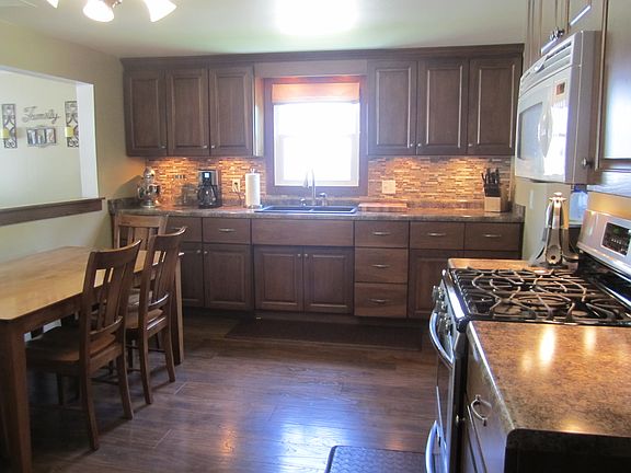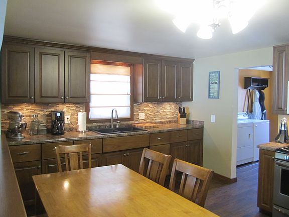 Cute, cute, cute! This adorable 2 bedroom, 2 bath home is very well kept and move-in ready! Featuring a large living room, a large eat-in kitchen with custom cabinets with some cool features like a pull out spice rack, pull out drawers, huge pantry, granite sink, under cabinet lighting, gas range. The owner's suite offers a private bath with tub/shower combo, large walk-in closet. Newer carpet. The roof is approx. 5 years old. Replacement windows throughout. At some point it was re-plumbed as there is a manabloc system. The large mud room/laundry (washer & dryer included) area leads to a great deck area - perfect for entertaining! 2 car detached garage with a workbench area and a lean-to around the back. The yard is long and narrow (fencing belongs to the neighbors with the exception of the back fence). The property line goes beyond the back fence to the white sign and the lot is a total of .576 acre +/- Average Monthly Utilities: Electric- AEP: $98, Nipsco Gas: $47, Water/Sewer/Trash/Recycling: $147 Appliances are included but not warrantied.