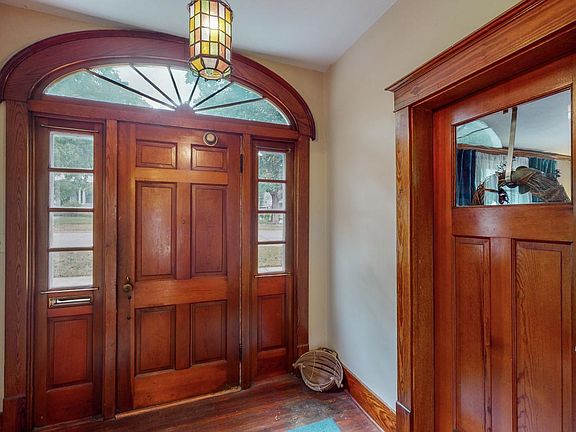 Lovely 1919 home with 2 bedrooms, 2 bathrooms, steel siding, filled with tons of character nestled on a corner lot in the heart of town! Original charm includes gorgeous woodwork, leaded window, paneled doors with original hardware, open staircase, wood floors, crown molding, French doors and built ins. Oversized 2 car garage (24'x30') for all the cars and toys. Enjoy a morning cup of coffee on the deck under the massive oak tree. Great place to call home.