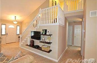 Immaculate 1.5 story home has an inviting open flr plan w/ soaring vaulted ceilings & neutral decor. It's situated on a quiet culdesac street & backs to a tree lined common area. The curb appeal will draw you in w/ lush landscaping, brick & vinyl ext. and covered porch. The great rm boasts a brick wdbrnng fireplace & wd mantle, large windows, designer fan & opens nicely to the dining area & kitchen. A nicely appointed kitchn has oak cabinets, plant shelves, gas range, builtin microwave, & brkfst bar. Step thru the atrium drs in the brkfst rm to a 15x15 ft patio & level yard w/ vinyl fence. Main flr master has 2 walkin closets, ensuite bath w/ dual vanities, palladian wndw over soaking spa tub, & sep shower. The main level also has a half bath & poss laundry rm. Upstairs, a loft overlks the grt rm & is adjacent to 2 addtnl bedrms w/ walkin closets & jack n jill bath. Finished lower level has a large rec rm and lots of storage! Close to hwys, parks & shopping! Brokered And Advertised By: Paradigm Realty Listing Agent: Elizabeth Fendler Neighborhood Description A wonderful quiet cul-de-sac street in a friendly neighborhood. Walk to George Winter Lake and St Louis County Park or take a quick stroll to the neighborhood's private stocked lake with walking trails.