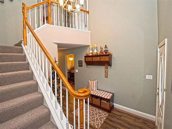 Your home search ends here with this Spacious Classic Oakmont Home. The Planted Flowers and Covered Front Porch welcome you home! Be WOWED by the LARGE and DRAMATIC two story Foyer with a Walk in Closet leads to the open floor plan which is great for entertaining. The Living Room and Dining Room feature HIGH CEILINGS, HARDWOOD FLOORS, OPEN CONCEPT FLOOR PLAN, STACKED STONE GAS FIREPLACE, WINDOW SEAT at BAY WINDOW, and NATURAL LIGHT. The newly UPDATED KITCHEN with GRANITE COUNTERS and STAINLESS STEEL APPLIANCES & BREAKFAST NOOK is open to the FAMILY ROOM with double doors to walk out to a WOOD DECK & LARGE PRIVATE BACK YARD. Spacious 1ST FLR LAUNDRY and Powder room complete the first floor. NEW CARPET on 2nd floor, KING SIZED MASTER SUITE with double closets fitted with custom closet systems & MASTERBATH with HEATED FLOORS! Features WALK IN shower & JET SPRAY TUB.3 Additional Bedrms, Generous Sized with Good Closet Space & 2nd Full Hall Bath. NEW CONCRETE DRIVEWAY can park four cars. Backyard was leveled and Amish 14x16 built shed with electric and heating. Is currently used as an office.