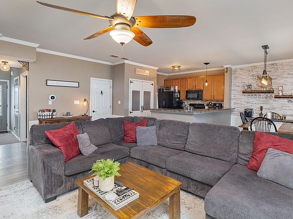 CUSTOM FINISHES is what sets this 2 story townhome APART from all the others! The woodworking is AMAZING inside and out! Beautiful WAINSCOTING & CROWN MOULDING wrapped around the living & dining room with SHIPLAP Wall creating modern entertainment design! Shiplap is also featured in both bathrooms, BAMBOO WOOD Floors, SOLID Maple Cabinets, Cabled stairway, COVERED Outdoor living space with BUILT-IN KITCHEN featuring Surefire grill & charcoal WEBER and outdoor TV. Plenty of greenspace for cornhole and other activities! Upper level features BRAND NEW Washer & Dryer, SPACIOUS main bedroom, large second bedroom, & a loft that can be an office, exercise area or possible 3rd bedroom. On top of all that a heated 2.5 car garage making this maintenance free living Wonderful! WINK Smart Home Technology will remain with property.