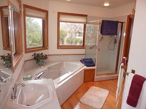 Great cul-de-sac, popular Centennial Trails steps to bike path! Bright 2-story w/Hdwd thru main lvl, spacious eat-in kitchen, lrg formal dining, family rm gas fireplace. Glass doors to deck, flagstone patio & low maintenance yard! Vltd living, rm bow windows. Main lvl laundry. Regal vltd master w/custom walk-in, 5 pc BA & private deck w/mountain views. Fin daylight bsmt w/rec-rm & kit, work rm & storage galore! New ext paint. Steel roof. Path to Eisenhower & Rock Park just at the end of street!