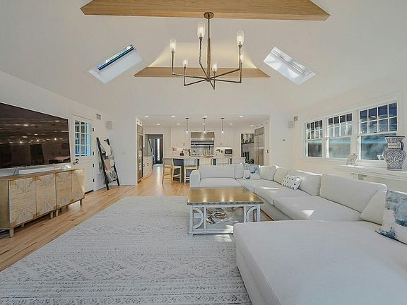 Have the best getaway ever in this newly renovated home in prestigious Nassau Point! At its heart is a sunny great room with a soaring cathedral ceiling. The chef's kitchen includes premium appliances, a large island, and flows into the living room with backyard views. The formal dining room, with bay views, is perfect for more formal gatherings.