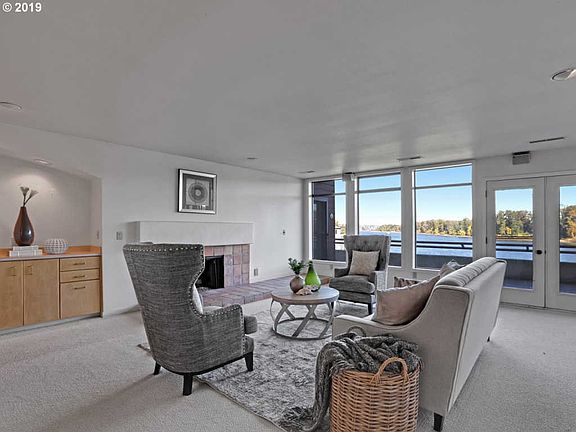 Open house cancelled! BEST BUY ON THE RIVER! Rare riverfront condo w/expansive unobstructed river & 2 mountain views! Lrg waterfront patio-enjoy wildlife & sunrises/sunsets. 1 level living w/elevator. Grand liv rm w/wall of windows. Ensuite bdrms. Family rm/office, sun rm & laundry/pantry. Smart flrpln w/mstr bdrm, DR & LR opening to patio. Gated entry/secure bldg/lovely grounds. Deeded storage & 2 prkg spaces. Ideal remod project