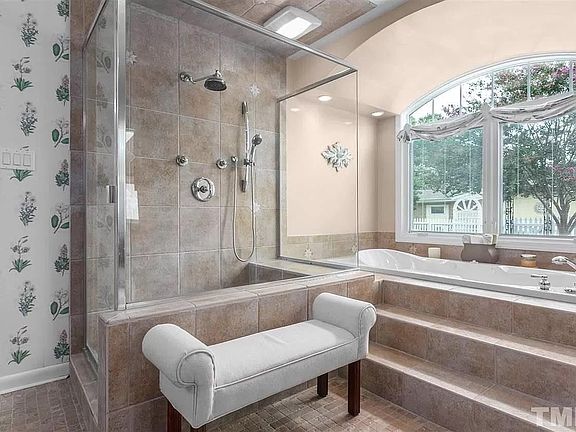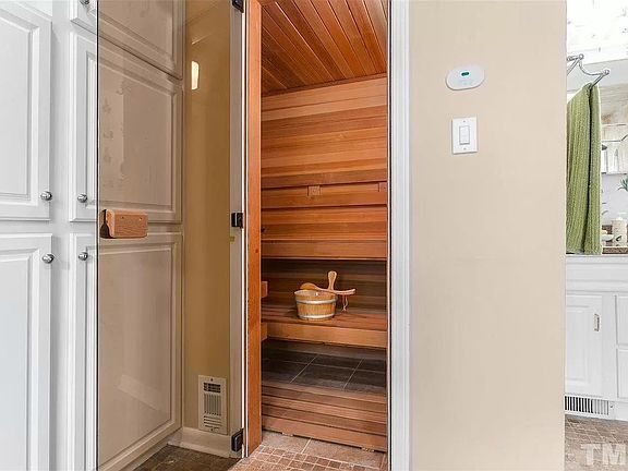 This charming Midtown Raleigh ranch home has 3 bedrooms and a quiet den/flex space that's perfect for working from home. The massive primary suite features a huge walk-in closet, a jetted tub, tiled walk-in shower, and personal sauna. Private and fully fenced back yard includes impeccable landscaping. Location is convenient to North Hills, Downtown Raleigh, I-540 and I-440.
