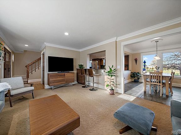 Welcome to Rainbow Ridge—a beautifully updated two-story home designed for peace and privacy. The backyard is a dream: circular flagstone patio, fire pit, four-season greenhouse, hot tub, water feature, and vibrant perennial gardens & flowering trees. Inside, enjoy a bright open floor plan with two family/sitting rooms, fireplace, beautiful picture windows throughout, new carpet, paint, upgraded electrical, and a stylish kitchen featuring soft-close cabinets, quartz counter tops, 5-burner gas range, stainless appliances, sink overlooking the backyard, and hardwood floors. Upstairs you'll find a spacious primary suite, two guest rooms, and a guest bath. The finished basement adds a fourth bedroom, full bath, large rec space, and storage room. The exterior features a two-car gar with power for an electric car, covered front porch with swing, and additional recreational parking. Just steps to the Gold Line, minutes to I-70, and 10 minutes to the mountains—this location is unbeatable. Enjoy community pool, tennis, pickleball, and neighborhood events year-round. Close proximity to Arvada's Van Bibber Open Space, a long bike ride to downtown Golden, or a quick one to Olde Town Arvada! This is the lifestyle you've been waiting for!