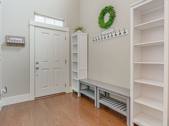 Craftsman on corner lot in The Greens golf community! Upgrades in 2017 include quartz countertops, premium carpets, and engineered hardwoods on the main. Open floor plan w/ high ceilings & gas fireplace. Gourmet kitchen has SS appliances & gas range. Spacious master w/ walk-in closet & soaking tub. Laundry on upper level w/ bedrooms! Dining area opens to deck w/ view overlooking fully fenced yard and Rex Hill Winery! Level corner lot by cul-d-sac. Huge exterior crawl space for storage.