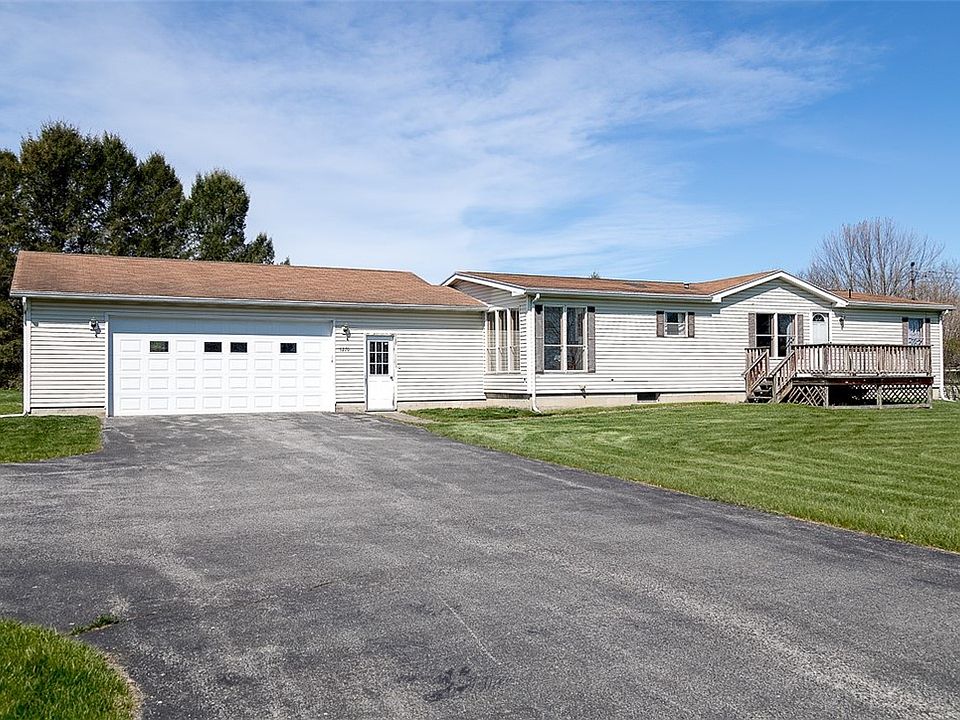 Manufactured Ranch home situated on a full cement block basement and attached 2 car garage! Large yard on 1.77 acres. Kitchen and breakfast area, living and dining room combo, primary bedroom with full bath, 2 additional bedrooms with full bath. Move right in and enjoy the large back yard. Public water. Full basement with 2 car attached garage.