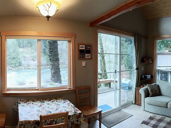 Cabin on the South Fork Skykomish River, (2) riverfront lots, located in Mt Index Riversites gated community, deck with wrap around bench that faces the river, above the flood zone, top quality construction and materials, recycled materials, hiking, fishing, kayak, swim in front of property, all season activities, weekend rental potential, relax and own a piece of the Wild Sky. Carl (425)770-8395