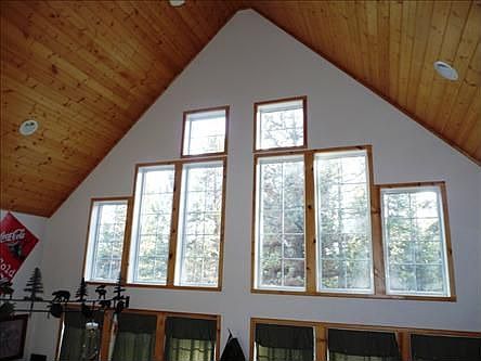 Very light & bright frame home with vaulted pine ceiling with indirect lighting. One wall of windows to ceiling for lots of natural light. This home shows like new and would be a great get way. All funiture & appliance remain with home. Don't just drive by this one it is a must see. Radiant hot water heat in floor.