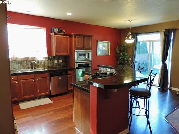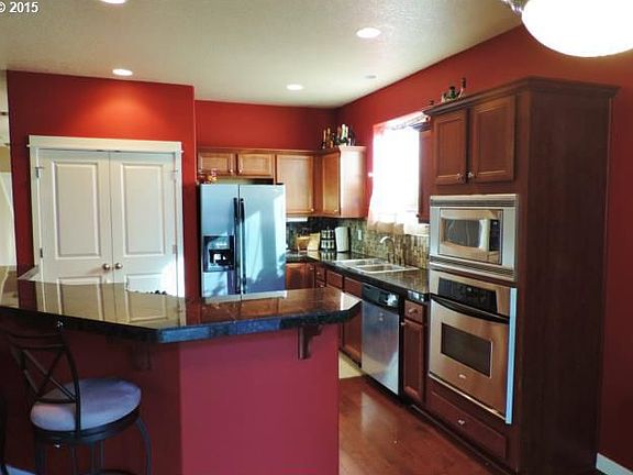 5! bedroom Home in the heart of Scappoose. Easy, fast commute to 30, shopping. 3! gas fireplaces one in master bedroom/suite. Open floor plan with architectural ceilings thru-out.Gas appliances. Stainless Refrigerator and washer&dryer stay. Newer Bosch dishwasher Easy living/entertaining in and out, in the fenced backyard with patio and covered sitting area.Be self sufficient gardening in the raised beds, apple & pear trees, strawberries.