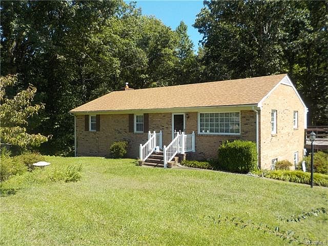 Desirable Maintenance Free Brick Rancher in Chesterfield County on .93 acre lot. Features include a Modern Dimensional Shingle Roof, Updated HVAC(2008) and Vinyl Insulated Replacement Windows. The homes boasts 4 spacious bedrooms and 2.5 bathrooms with hardwood floors and carpet. The Eat In Kitchen has been updated with Modern Cabinets and Modern appliances and has gorgeous Hardwood Floors and opens into a open Bright Sun room. The home has a full basement with a expansive Rec Room with a brick fireplace, Bedroom, Half bath and a large utility room with unfinished area ideal for a workshop or storage. Great outdoor living space with a good size yard, large rear deck for entertaining and 2 detached sheds. Area under deck can be used for a carport as the driveway is paved and leads under deck. You don't want to miss this one!!!!!