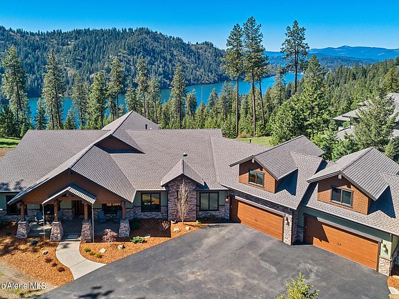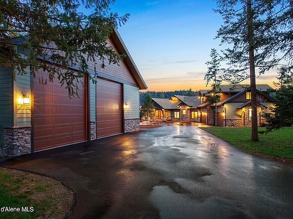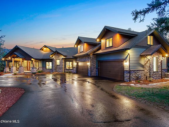 North Idaho luxury living at its finest in this custom built 5,260 sqft craftsman architectural beauty! Captivating views of Fernan lake & Coeur d' Alene Lake! Located in the premier gated community of Gifted View Estates, only minutes to downtown. Single level & built in 2020 on over 2 acres w/ a 40 x 40 shop. Extraordinary 4 bed, 4.5 bath + a 965 sqft bonus room w/ kitchenette & bathroom. Lake views & Upgraded detail throughout. 2. x 6 construction, 26' ceilings w/ douglas fir beams, new engineered hardwood floors, solid core 8' doors, knotty alder cabinets, gas fireplaces, art lights & soft close barn doors. Gourmet kitchen w/ granite counter & full backsplash, Thermador appliances, double ovens, 6 burner cooktop & BUILT IN COLUMN FREEZER/ fridge/ WINE fridge. Master ensuite w/ gas fireplace & his/hers WALK IN CLOSETS. Master bath w/ HEATED FLOOR including in the SHOWER & ENGINEERED PORCELAIN SHOWER WALLS. Secondary ensuite, office, gym, entertainment room & a DOG WASH STATION! Oversized 4 car garage, hardscape & low maintenance landscape. Every detail for convenience, Comfort & truly, a gifted view!!