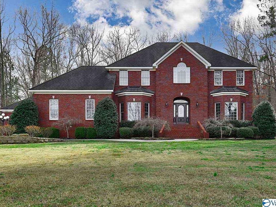 Welcome home to peaceful serenity! This majestic home is nestled perfectly on the back side of 4.6 acres with mature trees, a private driveway lined with Bradford Pear trees, and meticulously kept landscaping. Featuring a custom kitchen with an abundance of cabinet space complimented by granite counter tops. Equipped with two master suites and two custom-designed master baths give new meaning to luxurious living! Each master suite bathrooms boast a soaking tub, a large walk-in shower, two walk-in closets, and double sinks. Large windows throughout the home provide ample natural lighting. Relax on the veranda, tinker around in one of the two garages or enjoy hosting your next BBQ on the large private patio. Easy commute to Redstone Arsenal, NASA/Marshall Space Flight Center, and Huntsville Hospital. New seamless covered gutters 2021. New custom insulated garage doors 2021. Brand new 4 piece kitchen appliances 2021. New second story washer and dryer 2021. This home has 2 laundry rooms.
