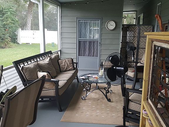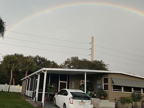 Ideal snow bird home! The front enclosed room was damaged during Hurricane Milton and removed. New lanai plans are in place waiting for you to complete the work! No damage to inside if house at all. Home has been totally remodeled. New windows, insulation, drywall, laminate and carpet. Private Entrance to Master bedroom. All upgrades and maintenance work complete. Roof is in excellent shape. Air conditioner only one year old. Vapor barrier under home upgraded in 2024 by Tommy Tie Downs. New hot water heater. All maintenance done by handyman who lives in the park. Fantastic home! Priced to sell immediately!!