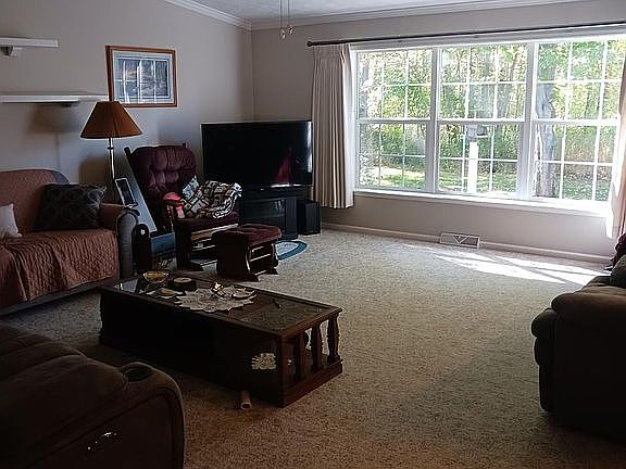 Wide open floor planHuge family roomAdjacent dining roomVaulted ceilingsBeautiful walk-in showerSurrounded by woods