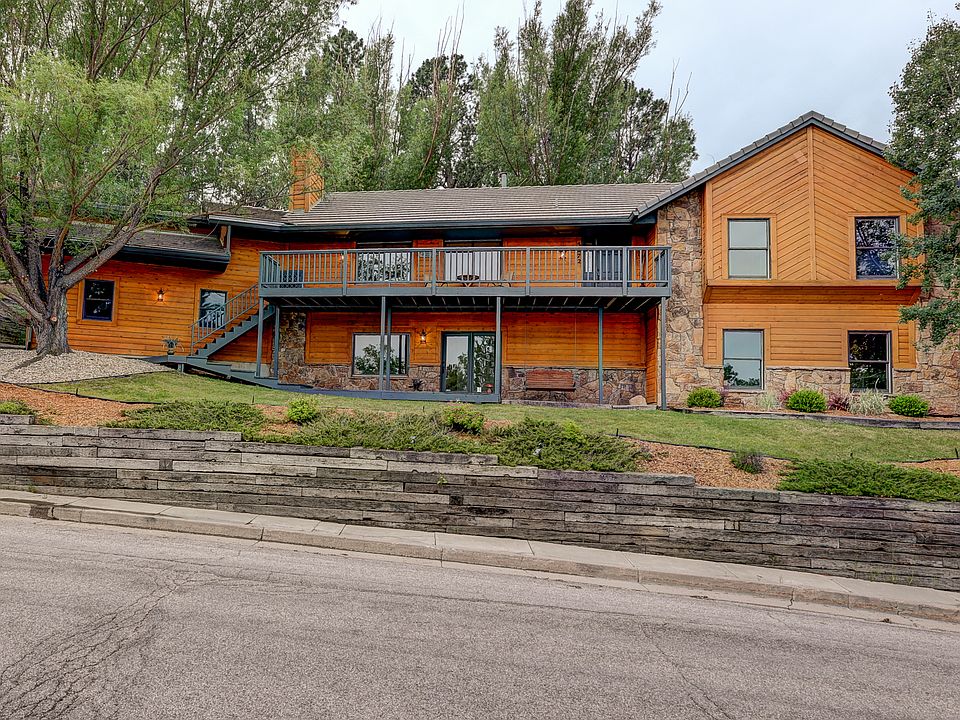 Professionally remodeled stunning raised rancher! Home welcomes you with a gorgeous cedar & stone exterior as well as impressive landscaping giving the home impeccable curb appeal. Travel up the stairs to a spacious front deck with nice views. Step into an large bright living room featuring brand new carpet, custom warm paint, brick adorned wood fireplace & vaulted ceilings. Continue to the spacious walk-out dining area with beautiful hardwood flooring, stylish light fixture and skylights. Kitchen boasts vaulted ceilings, matching black appliances, stunning granite counter tops and counter bar, custom tiled back-splash and hardwood flooring. Cabinet & pantry spaces give you great kitchen storage space. Extremely spacious master suite gives you all the space you will need to create your private retreat. Master suite features brand new carpet, neutral custom paint, two closets including one spacious walk-in closet with built in shelving. A private 5-piece master bathroom adjoins with master suite. Impressive custom tile work can be seen throughout bathroom including soaking tub and free-standing shower with honed river rock floor tile. Master bathroom walks out to a back deck to enjoy the privacy of the backyard. As you travel down to lower level you are immediately greeted with a roomy family room that walks out to a covered front porch. Separate laundry room, full bath and 3 well appointed bedrooms complete lower level. Out back gives you a great private space to enjoy with surrounding mature trees and stone patio. This home gives you a great mountain feeling in the heart of the city.