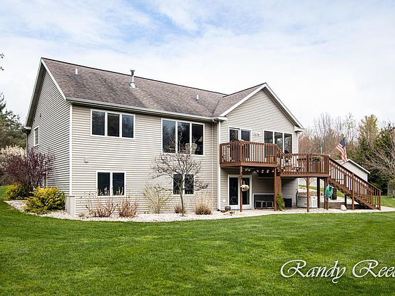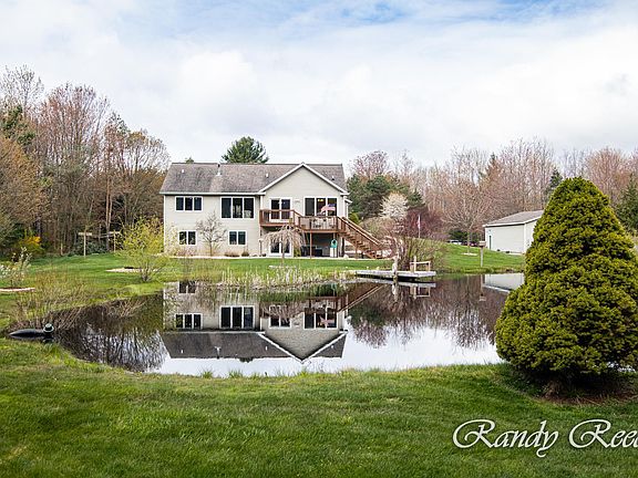 This walkout Ranch built in 2000 has an extremely beautiful & private setting. It overlooks a pond full of fish, woods full of deer & turkeys, yet your just 4 1/2 miles East of the Lakes Mall. There's a sunroom, a fireplace, a main floor en suite, Hickory floors, a very open floor plan & a huge family room downstairs. There's a dock for fishing, underground sprinkling, and very beautiful trees & landscaping everywhere you look. There's Central Air, a Generac Generator system, & a 32x40 pole barn with front & back overhead doors. There's a fountain for the pond, an extra parking pad for your camper & Xfinity cable for your internet. With all of this on 6.46 acres just 5 minutes from both the I-96 Fruitport exit and US-31 at Sternberg Rd. This is a perfect private retreat to call home!