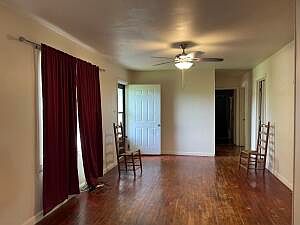 Country Setting! 3 bedroom, 1 full bath, with spacious living/dining area. Covered front porch, decked. Level yard with large mature shade trees in the front yard. Valley Springs School District. Window AC/Propane space heater.