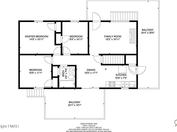 - Total interior livable area: 1,500 sqft