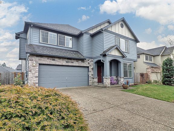 Click Vtour link for 3D walk through & more. Charming 5 Bedroom in Scappoose. Covered front porch. Soaring ceilings in light-filled living opens to formal dining. Kitchen features tile counters, cook island w eat bar, pantry, & dining nook w slider to back patio. Gas fireplace in generous family. Bedroom available on main. Master suite, 3 spare beds, bonus & laundry room up. Walk-in closet & garden tub in vaulted master suite. Fenced backyard features patio, large deck, & fenced side yard.