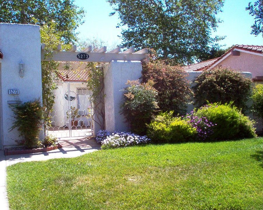Detached Villa Terraza in Gate 11 of Laguna Woods Village (55+) is in excellent condition and in an excellent location. The courtyard is beautifully landscaped with easy maintenance. The entry, hall, kitchen and bathrooms are tiled. The living room has parquet flooring, vaulted ceiling and fireplace. There is a tiled enclosed back patio with a sliding door leading from the living room and one leading to the outside area. Another side patio is covered and tiled and has a pass through window leading from the kitchen. This patio also has a sliding door leading to the back area of the home. The patio off of the master bedroom is open and has indoor/outdoor carpet. There are mirrored closet doors in the master bedroom. A lrge mirror is on the wall in the hall. The oversized garage has many storage cabinets, a washer and a dryer.