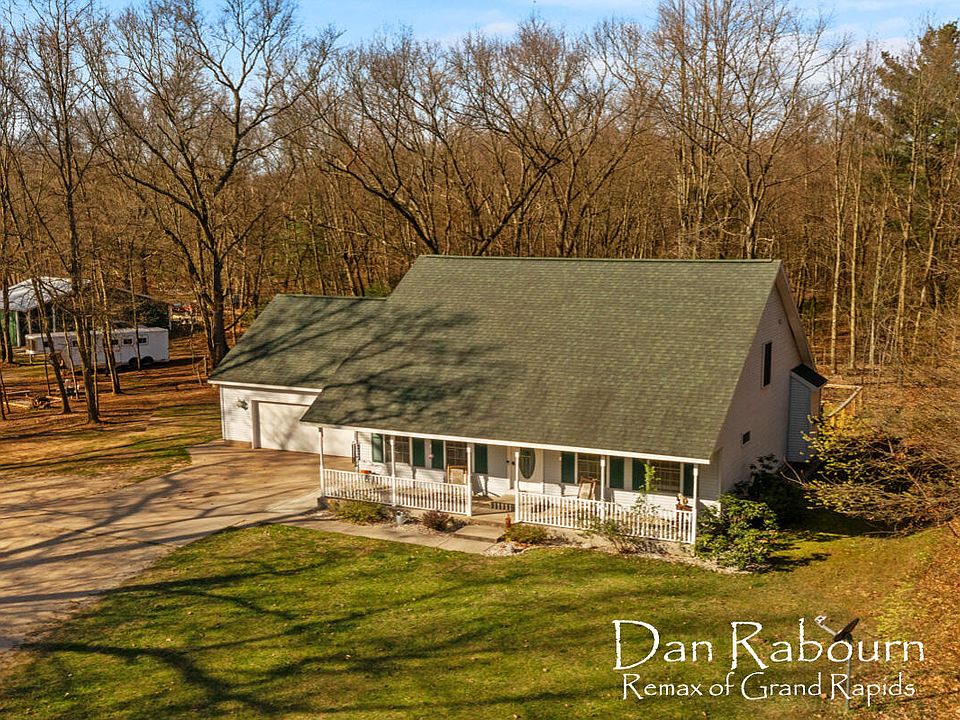 Custom quality built 2 Story. 9.4 acres of serene privacy, walking distance to 3 lakes. Spacious 1,938 sqft of big rooms & living space. Well-appointed kitchen includes appliances. Dining area walks out to charming deck overlooking picturesque surroundings, an ideal spot for relaxing, observing wildlife, & listening to the quiet! Large living rm with Converted Fireplace. Main floor Master & Upper Level Bedrooms big enough to be Master Suites w/Walk-In Closets. Open office area upstairs. High efficient NATURAL GAS furnace. Oversized Pole Barn with 1yr old metal roof could easily convert back for horses. Roof furnace & central air new in last 10yr. Fenced yard for pets. Great for hunting. New Well & Tank. Roof & Air 2017, Furnace 2014. Encapsulated crawl space temperature controlled.