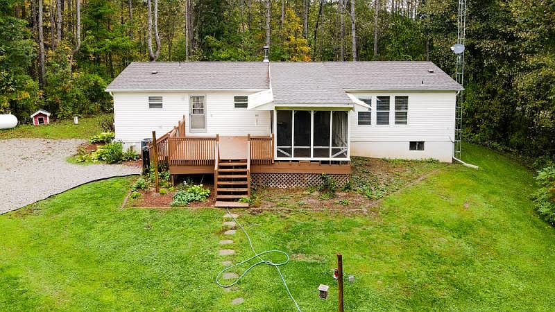 Long quiet dirt road... Private setting... completely surrounded by trees! If your looking for peace, quiet and privacy this is the home for you! This is move in ready just looking for a new owner. Sit on your large back deck and sip your coffee and enjoy watching all the wild life. Part of the deck has a very nice screened in area. Large floor plan includes 3 BIG bedrooms 2 remodeled FULL bathrooms, a large living room, even a family room with your own wood stove! All sitting on a full unfinished basement. Outside we have a 30 x 32 pole barn that is being used as a 2 1/2 car garage. Barn has cement floors and 220 electric. Come and enjoy this peaceful setting nestled back in the woods.