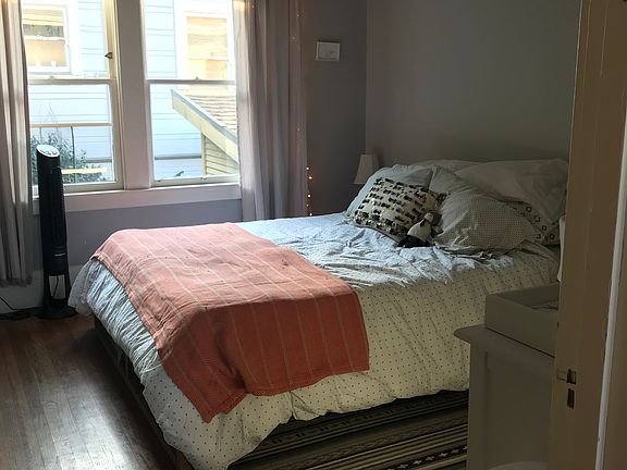 5275 Miles Avenue Corner Clifton, Oakland. Three blocks to Rockridge BART and Market Hall. Available July 1, 2025 Features: Two Bedroom one bath charming California Craftsman's Duplex (side by side) located in the coveted Rockridge - Temescal neighborhood of Oakland. Enter the home through the covered front porch into a warm and attractive environment. The living room has hardwood floors that flow through the charming, spacious and light-filled home/apartment. Large tiled kitchen and one full bath. Access to front, side and "secret garden" in backyard. Edible landscape and permaculture organic garden. Appliances: Refrigerator/freezer; gas range; gas central heat, full-size shared washer and dryer in basement. Community: Quiet neighborhood block from community park, and greenbelt Temescal creek. Tree-lined, walkable neighborhood, near transit village (Rockridge BART) with access to Market Hall, Whole Foods, Trader Joes, Rockridge culture, farmers market, restaurants, etc. Close to schools and parks, ten minutes from UC Berkeley or downtown Oakland or SF/Oakland Bay Bridge. Ideal for San Francisco commuter. Transportation: Walk and Bike Paradise (Score 91). Easy street parking, also commuter ride share, bus, and BART. Minutes from Rockridge BART station, AC Transit bus lines; TransBay bus, Easy access to Highways 24, 13 and Interstates 580 or 880. Details: Owner pays water and gardening. Small pet negotiable. Non-smoker. Extra deposit for agreed pet. Move in Requirements: Completed application, First month's rent ($3400), and Security deposit ($3500); Current credit report (within the last 60 days). Available for move in July 1, 2025. One year lease. Location: 5275 Miles Avenue (corner house, cross street - Clifton Avenue). Oakland, CA 94618 Please bring rental resume and credit report to Open House One year, renewable. 60 days notice required at end of lease.