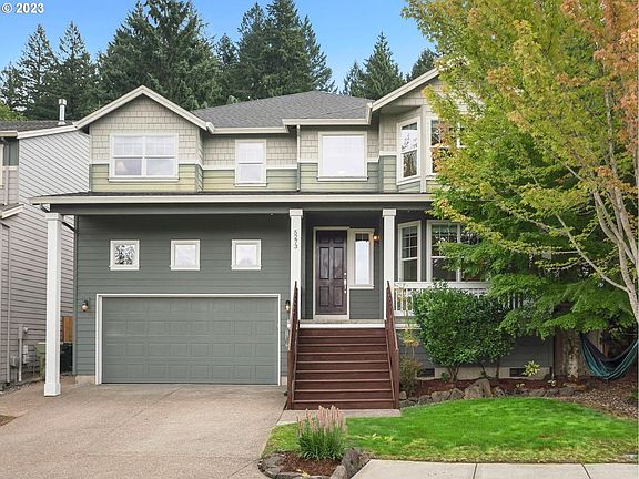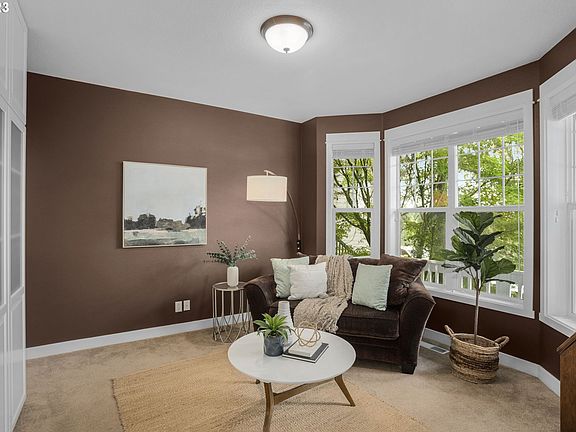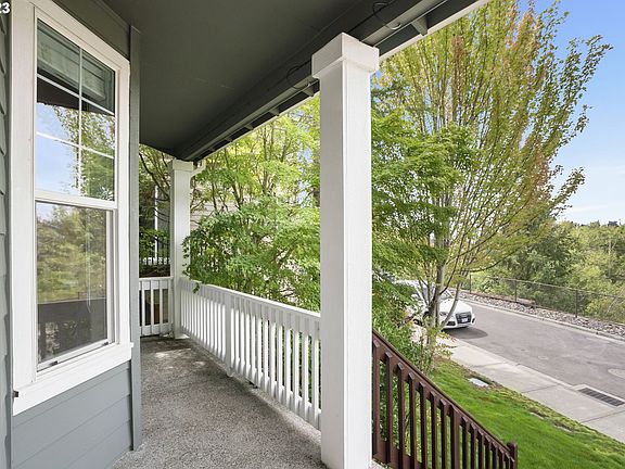 ENJOY SUNSETS FROM THE FRONT PORCH of this beautiful home on a quiet street in Bannister Creek/Bethany area that overlooks greenspace. Featuring Brazilian maple floors, high ceilings and large windows. Den/bedroom at the front of the home next to a full bathroom. OPEN CONCEPT LIVING & DINING with built-in cabinets and shelving, gas fireplace and plush carpet. GOURMET KITCHEN has a nook, breakfast island, granite tile counters, soft-close drawers and cabinets, stainless steel appliances, and large pantry. LAUNDRY ROOM is next to the mudroom area. UPSTAIRS, THE LIGHT-FILLED FAMILY ROOM with skylights is surrounded by four well-sized bedrooms. LARGE PRIMARY SUITE features a bay window and offers two walk-in closets and a large bathroom. TWO-CAR GARAGE, WITH A 19-FOOT TALL CEILING, high clearance garage door with shaft drive opener, offers tons of great storage and a work bench area. Private backyard and patio. HOME IS SITUATED on a dead end street close to walking trails and neighborhood park. Easy access to Cedar Mill, Bethany Village, Nike, Intel, and more.