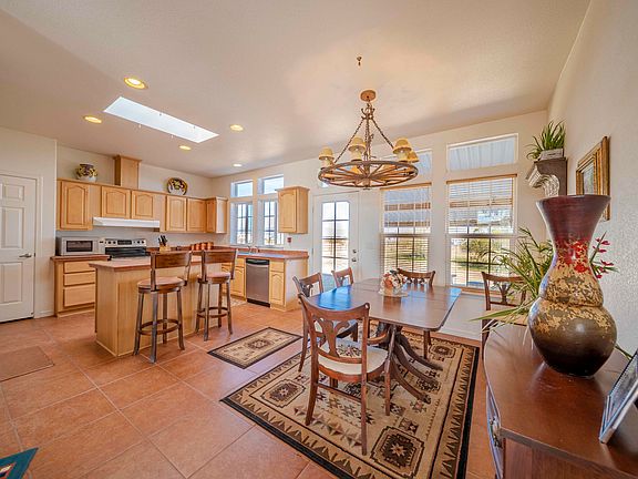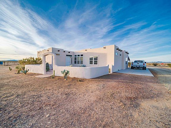 TURN KEY HORSE FACILITY! Beautiful 2368 sq ft home. 3 bedroom, 2 1/2 bath plus Den. Formal Dinning room, island kitchen, HUGE bedrooms ALL with walk in closets. Skylights and tile thru out home. Sunken tub and walk in shower in master bath, Separate laundry room/mud room with door to covered back patio. Enjoy the beautiful southern exposure courtyard that looks out on multiple large pastures. Behind this incredible home you have several more pasture/turnouts, 6 individual pipe pens, tractor barn with covered hay/feed and tractor cover. Full roping arena, return, chute, catch pens, AMAZING location with Silver Bit roping arena directly across the street. Easy access to unlimited State and BLM land for miles and miles of scenic riding. This property has TWO WELL shares AND can also connect to Aguila Water Company (Private water company for the town of Aguila). Water connection is directly in front of property. This lot is splitable into multiple parcels with 1 acre minimum R-43 zoning. Loads of options with this great property.