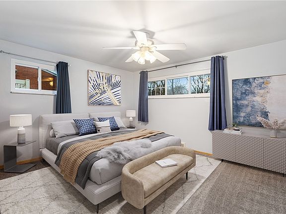 ONE LEVEL LIVING - Spacious brick ranch with 2 possibly 3 bedrooms and 2 full baths. The formal living room spans almost 20' with large picture window and new carpet. The large equipped kitchen is open to the formal dining room and has access to the 3 season room. 2 nice bedrooms serviced by a ceramic tile bath. The lower level provides you with a finished game room, a 2nd full bath and an area for a home office + a separate laundry room and storage room. Outside you'll enjoy the level private yard space. Take advantage of all of the off-street parking as well as the integral garage. All this + updated flooring, windows & mechanics. Very convenient location! Note: This floor plan allows for the dining room to be converted into 3rd bedroom.