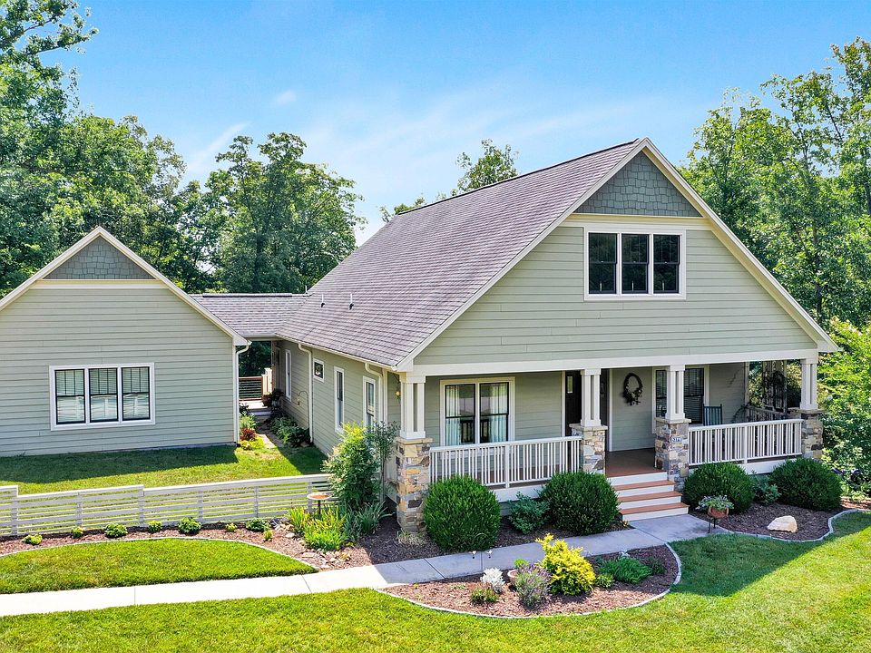 Immaculate Craftstyle Contemporary, Open Floor Plan with Fantastic Gourmet Kitchen, Huge Island with Granite Counters, Stainless Steel Appliances including Bosch Oven and Warmer Drawer, Gas Range Top, Dishwasher and Refrigerator. Covered Porch off the kitchen and lots of open Trex decking, overlooking the woods, Coffered Ceilings in the Great Room with Gas Fireplace, Office/Den with privacy doors and custom built in Cabinetry, Master Bedroom Suite with Tiled Walk In Shower and double vanities, Huge Pantry Closet and Laundry Room on the Entry Level. Lower Level has two guest rooms and a full bath plus a studio/craft room with sink and exterior exit. 800 sq ft workshop with double doors. 2x6 Construction with spray in foam plus batt insulation. 2 Car Oversized Garage with Breeze