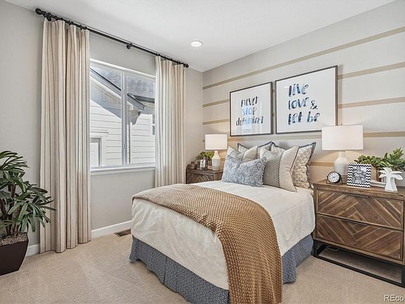 **!!FORMER MODEL!!**SPECIAL FINANCING AVAILABLE**This Arlington is waiting to impress with the convenience of its ranch-style layout along with designer finishes throughout. The main floor offers two generous bedrooms flanking a shared bath offering ideal accommodations for family or guests. The open layout leads you to the back of the home where a beautiful gourmet kitchen awaits and features a quartz center island, roomy pantry and upgraded GE Plus appliances. Beyond, the open dining room flows into the welcoming great room with a contemporary fireplace with floor to ceiling tile. Enjoy meals and conversation on the large covered patio. The nearby primary suite showcases a spacious walk-in closet and a private bath. A convenient laundry and mud room complete the main level. If that wasn’t enough, this exceptional home includes a finished basement that boasts a wide-open rec room with a stunning wet bar, including a refrigerator, along with a shared bath and two large basement bedrooms with walk-in closets.**CALL 303.850.5757 TO SCHEDULE A TOUR TODAY!**