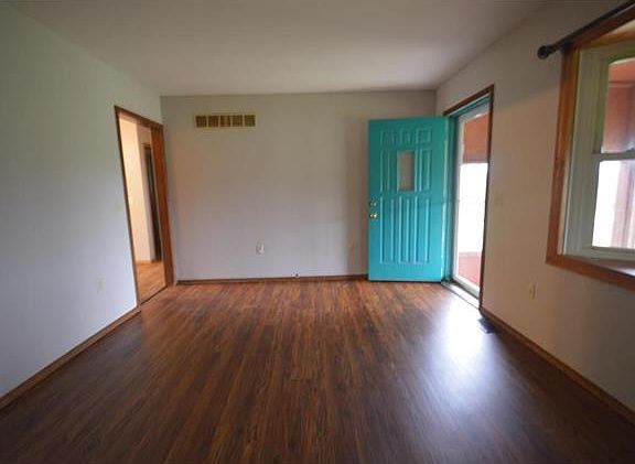 It's "IN" to be "OUT" of town! Check this 1.5 Story cedar style home located on exactly 1 acre just south of Waterloo. This 2 bedroom, 1.5 bath has so much to offer to a new homeowner getting started or to downsize. Adorable eat-in kitchen was updated in 2012, has some pullout cabinetry on the inside, newer appliances, flooring in the kitchen, bathroom, main level bath, bedroom, living room and main level just painted! Nice sized living room with bay window & built in speakers and screened in porch. Very spacious upstairs bedrooms w/2 closets needs painting, carpeting, updating in the ½ bath. Lower level basement is partially finished & can be used for a family room & also has door that walks up into the garage. You will fall in love with the pavered brick back patio, ceiling fans, concrete bar, w/bar stools and walkway & seating to a custom built fire pit. Outbuilding has electric, concrete floor and wood stove. Home fenced & roof 10 yrs old! Don't expect this one to last long!