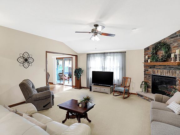 Charming Brick Ranch Home with Modern Upgrades. This beautifully maintained brick ranch offers a perfect blend of comfort and style, situated in a peaceful neighborhood with no HOA. Step inside to find a spacious living area adorned with neutral paint and new luxury vinyl plank flooring that creates a warm and inviting atmosphere.The heart of the home is the kitchen, featuring granite countertops and stainless steel appliances, making it a chef's delight. Enjoy your meals in the adjoining dining space or bask in natural light in the delightful four-seasons sunroom, perfect for relaxation or entertaining year-round. The family room is a cozy retreat, complete with a vented gas fireplace that adds warmth and ambiance on cooler evenings. Retreat to the spacious master suite, which boasts a walk-in closet, a luxurious walk-in shower, double sinks, and a stylish tray ceiling. Two additional well-appointed bedrooms offer ample space for family or guests. Additional highlights include a finished garage with convenient pull-down attic stairs leading to a floored attic for extra storage, a new roof, and Anderson windows that enhance energy efficiency and aesthetic appeal. Don't miss the opportunity to make this lovely home yours-schedule a showing today!