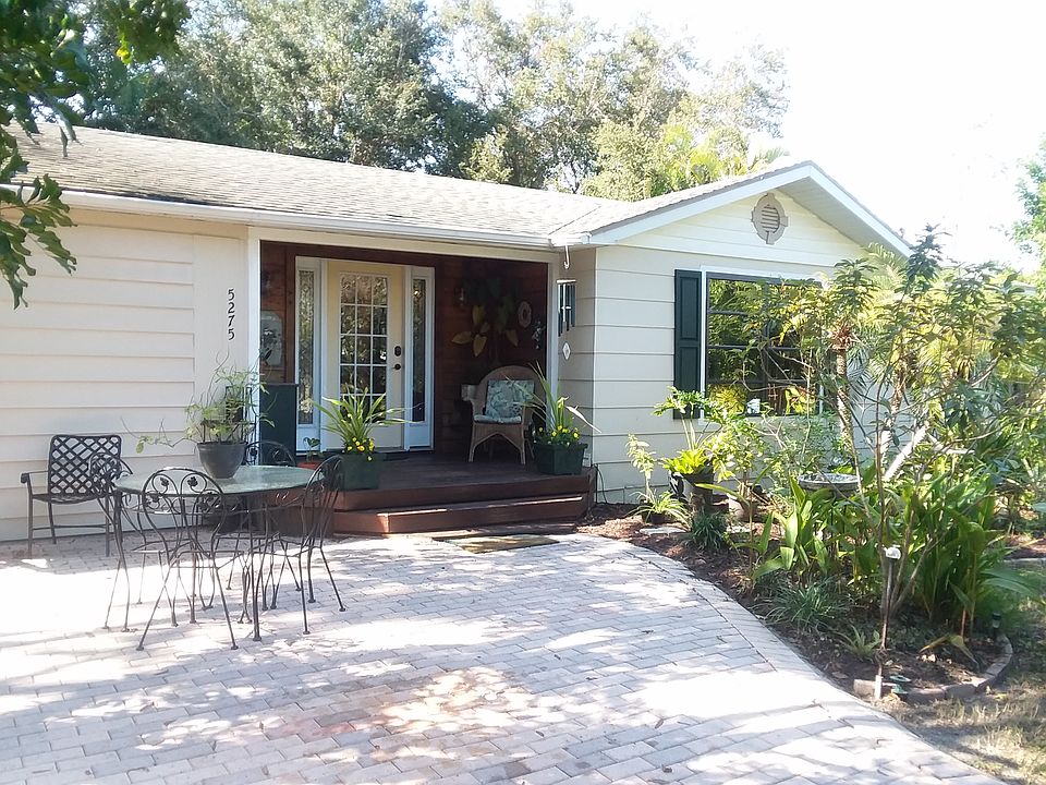 Custom designed 2 bedroom, 1 bath ranch offers a variety of opportunities for the first time buyer, vacationer or downsizer. Built in 1971, home encompasses 1364' sq. feet of living space while sitting easterly on the wooded home site. A charismatic covered front porch will draw you to a light and bright interior. Enter through a glass front door with leaded side panels into the cozy foyer and many pleasantries will immediately catch your attention. Wood flooring throughout, beams, tray ceiling, recessed lighting, glass sliders and neutral wall colors have a flattering effect on the overall decor. A masterful garage transformation provides a viable opportunity for guest accommodations, media room, office or den. A roomy kitchen with cabinets and counters galore allow for quick easy meal preparation. The screened lanai is the perfect place for meditation and reflection. You will be taken in by the invigorating outdoor setting incorporated into the "off the beaten track" natural environment. Aromatic tropical plants, flowers and greenery surround the 100'x100' lot. Old oak and jasmine trees provide a natural barrier resulting in ultimate privacy. A new roof installation was completed in 2019. Cultural activities, farmer's market, eclectic restaurants, top rated golf courses and pristine beaches are close in proximity to your new home. South Venice Beach Ferry, boat ramp and kayak/canoe launch are just 2.4 miles away. Convenience, affordability and a nature lover's setting can be yours. Call today!