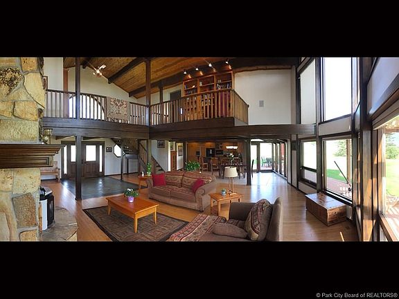 Beautiful Ranch with green belt & low taxes, perfectly situated on 8 Acres with panoramic views of the valleys and Uinta mountains through every window. Truly a house of light, amazing views at every turn; all the little details have been perfected over the years. It also boasts huge bay windows, master suites on both floors and multiple decks with a pergola. Heated 3 car garage with a mud room. Heated interior barn building 30' x 40' (entire barn much bigger) with concrete floors and 12' x 12' garage door and Inside RV Parking, lighting, 220v power, 220v Air compressor and on the outside of the barn are built in and covered hay storage, stable and parking areas under the main barn roof. 14 Water shares included, north field and north bench irrigation co. Irrigation canal through property runs almost constantly through irrigation season. Square footage from county records. Buyer to verify all information. Agent related to seller. Owner will carry financing with 60% down.
